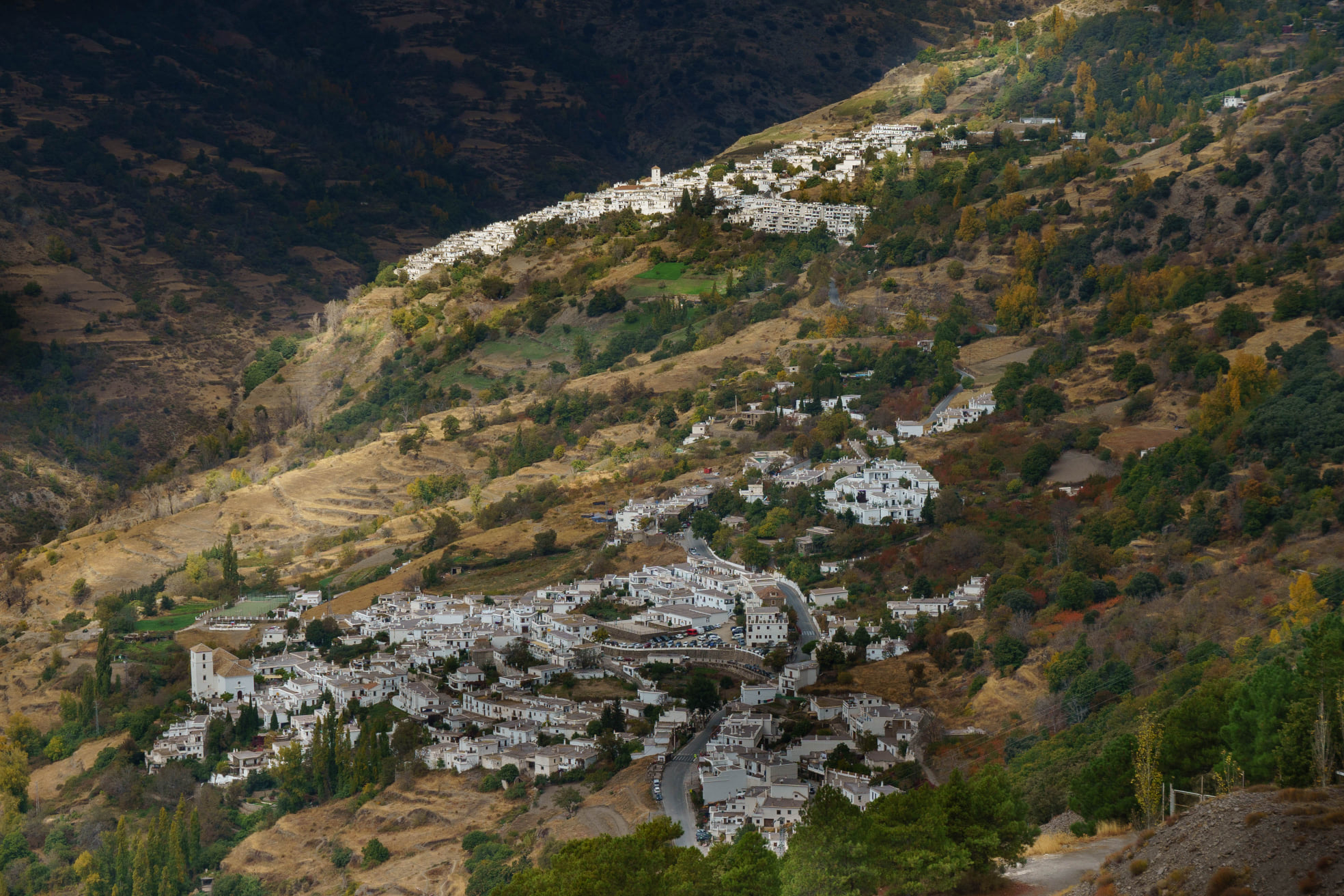 Situado a casi 1.500 metros de altitud, en las faldas de los imponentes picos de Sierra Nevada, Capileira destaca por sus encantadoras casas blancas que, junto a las de sus pueblos vecinos Bubión y Pampaneira, salpican las empinadas laderas del Barranco de Poqueira. Este paisaje es, sin duda, uno de los más impresionantes que se pueden contemplar en Andalucía.